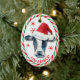 Den här söta Helgdag ger en roligt åt vem som helst! På framsidan finns en svart och vit ko med röd och vit tomtehatt. Omkring kon är porträtt ornat rött snöflingor. I grund står det i anpassningsbarna "Cowabunga". Bilden ramas med söt röd, grönt och vit candy cane rand mönster. Baksidan av dekorementet har samma strimlade ram och flera texttexter fält som du kan anpassa.