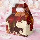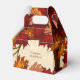 En illustration av en cowboy på horseback med höst löv på en partiaffär.