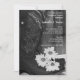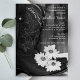 Gästerna i inbjudan till en före giftermål party hedrar bruden och brudgummen med den charmerande Rustic Cowboyboots och Daisy Land Westerna Bröllop Rehearsal Dinner-inbjudan. Den lättaxade anpassningsbar ranch-blommarna stil bröllop-repetitionsmiddagen i inbjudan har ett digitalt utökat svart och vitt blommigt-foto av lädercowboystövlar och vita blommor av daisy med vävlad laduvirbakgrund.