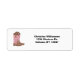 Tycker du om westerna tematiska returetiketter? Den här adressetiketten har en bild av cowboystövlar i rosa och brunt med lila stjärnor. Texten kan ändras och anpassas efter dina behov!