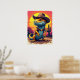 Den här poster det enda sheriffSpiket, en legendarisk skäggig drake med ett hjärta av guld och ett utseende som elak gör. Långt innan han var lagman var Spiket bara en ökenödla med en knack för att stå på hans baksida i ben. En dag avslöjade en häftig stoftstorm en liten, kasserad cowboyhatt och en shining sheriff stjärna. Med en puff av hans imponerande skägg, tog han dem och legenden föddes. Hans skevhet, som ses i den här poster, är inte bara för show, utan det är hur ge ser ut i en skurk som hotar freden i Vilda western. Den här teckningen är speciell eftersom den tar ett älskat sällskapsdjur och förvandlar honom till en ikonisk popkulturkaraktär. Kombinationen av en tuff-tittar ödla med en söt cowboyunge som skapar en unik och humoristisk kontrast som är omedelbart tilltalande. Den svävande popkonsten stil - med feta konturer och en nysolnedgång - gör den till ett utmärkt biet, en perfekt för alla som kärlek lustiga membran, husdjur eller fantasins vismliknande sida.