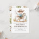 Anpassa ditt eget cowboytema födelsedagsfest inbjudan med denna charmerande design. Inbjudan innehåller en detaljerad illustration av att en ung cowboy rider på en häst mot en vit bakgrund.