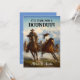En cowboy och cowgirl är på horseback och tittar att runda upp några vänner för en årsdag party.
