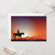 Det här är en cowboy som rider en häst. cowboy på hästen går över land vid solnedgången. Den här cowboy som kör en hästdesign ser underbarare ut på den här inbjudan