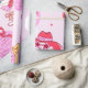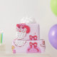 A playful festive artwork featuring cowboy Santa with star shaped glasses, pink disco ornaments tied with bows, cheerful gift boxes, holly sprigs, and a cherry topped holiday cocktail. Set against a soft pink background with scattered snowflakes and dots, the whimsical mix creates a bright, quirky, and joyful seasonal vibe.