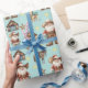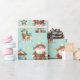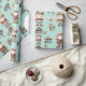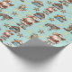 A Cute Wrapping Paper Design With A Western Theme Of Cowboy Santa, With Horse In Teal