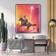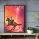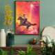 Inspired by retro science fiction posters and classic western imagery, this design merges two iconic genres—space exploration and frontier adventure. The combination of a cowboy, desert mountains, and a hovering flying saucer creates a bold visual story that feels both vintage and futuristic.