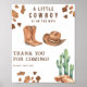 Saddla upp! Den här vattenfärgen cowboydesignen. Den här designen har modern neutralt färg i ett vattenfärgsprogram. Konstruktion i koma, cowboyhatt, ökenkaktus, cowboystövlar. "En liten cowboy är på väg."