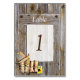 Cute land och westerna stil, nödsakade träkort och kort för bordsnummer av solrosblommor för ditt bröllop.