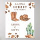 Saddla upp! Den här vattenfärgen cowboydesignen. Den här designen har modern neutralt färg i ett vattenfärgsprogram. Konstruktion i koma, cowboyhatt, ökenkaktus, cowboystövlar. "En liten cowboy är på väg."