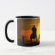 Cowboys och styrman i sydvästra solnedgången. En vacker western cowboykaffe i land mugg.