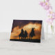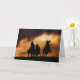 Tre cowboys rider vid solnedgången och ropade de sista stångarna.