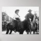 Cowgirl and Cowboy on Horseback: 1908 Poster