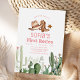 Första Rodeo-födelsedagstoket som inbjudan till Barns födelsedag är speciell, och inbjudan kan hjälpa till att göra en minnesvärd födelsedagsfest. Elegantens kalligrafi på lassobakgrunden omgiven av cowboytillbehör: hatt, sheriff's badge och stövlar med sporrar och vattenfärgsaktus.
