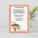 En västerländsk inbjudan med söt cowgirl som svänger en lasso, kaktus och leksaksridhäst med röd rutig kant. Lätt att anpassa med dina födelsedagsdetaljer. grafik ©Riefka Designs