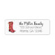 Dessa adressetiketter har en vattenfärg porträtt i ett par röda cowgirl-botar som dekoreras med ett guld-band.