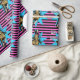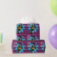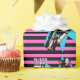 Cowgirl som kör hästtryck på rosa och svart rand-presenter som är pappra. Grattis på födelsedagen
