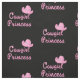 Cowgirl Princess text med rosa cowboyhatt Background kan bytas till vilken färg som helst. Det finns motsvarande 1/2- och 3-tums satin- eller groskornigt band.