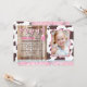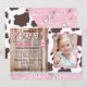 Cowgirl western födelserbjudandekort med rosa bandanna print, rustik wood plank bakgrunden och party buntning.