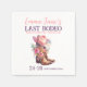 En vacker Cowgirl Sista Rodeo Möhippa servett. Med cowgirlstövlar blommor och rosa cowgirlhatt .En Stor västerländsk pappersservett för möhippa. Texten är i blekrosa och lila och allt kan ändras för att anpassas till din fest och sedan anpassas med namn och datum.