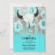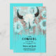This Cowgirl baby shower invitation features a floral teal sunflowers and a western country rodeo bull skull theme design. Vintage barn wood style background. Image copyright Marg Seregelyi Photography.