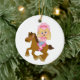 Cowgirlridninghäst (rosor) julgransprydnad keramik