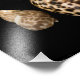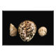 Ett livsfoto av tre fläckiga segelceller, med den största i mitten, på en svart bakgrund.