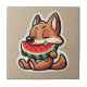 Rolig bild på en prärievarg som äter en vattenmelon. Kanten kan tas bort.