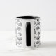 Indulge in your love for literature and felines with this enchanting mug featuring a detailed black and white pattern of cats resting on stacks of books, surrounded by whimsical celestial and floral elements. This delightful design captures the cozy essence of a perfect reading day. The mug itself has a contrasting black handle and interior, making the intricate artwork pop against the white exterior. It's the ideal gift for librarians, bookworms, cat lovers, or anyone who cherishes a quiet moment with a good book and a warm drink. Perfect for coffee, tea, or hot cocoa.