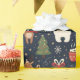 Features a charming, cozy Christmas pattern with trees, hot cocoa, and snowflakes on a sophisticated navy blue background.