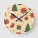 Cozy Christmas Pattern with Gifts and Trees Rund Klocka
