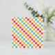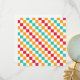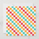 Alternating red, orange, teal, and white squares create a colorful, vibrant checkerboard pattern, conveying an energetic and playful tone.