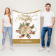 A Cozy Grandma Merry Christmas Fleece Blanket decorated with Gold, Green and Red Christmas Poinsettia Floral. This Christmas Blanket is accented with gold colored stars, the text: Merry Christmas and trim. Additional text includes: Grandma. To personalize, simply insert your preferred text into our template to replace Grandma with Nanna, Grannie, Mom, or a First Name. Make a great Christmas gift for Grandma.