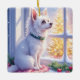 Cozy Maltese by Snowy Window Christmas Dog Art Julgransprydnad Keramik