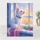 Cozy Maltese by Snowy Window Christmas Dog Art Kort