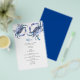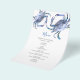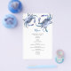Designat att samordna med min vattenfärgsblå krabbpappersinsamling. Den här budgetmiddagsmenyn lakan kan vara personlig med dina val av namn och måltider. De har min ursprungliga vattenfärgskonst och gör att perfekten passar dina bord-inställningar. Menyn ord är förinställd i ett modernt kalligrafiskript i blått. Öresekortet återgår till en solid komplementär färg. Perfekt för krabbkoks, bröllop, repetitionsmiddagar, förlovningsfest och mottagningar. Om du vill se hela bröllop-sviten går du till www.zazzle.com/dotellabelle