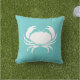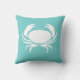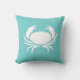 del av havets temade decoc CRAB WHITE på tealblåa kuddar