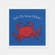 Krabbplockning eller skaldjursboil party. Har en röd hård snäcka krabba på en nautisk sommarblå bakgrund. Roligt för floden, stranden eller party, eller för alla evenemang för teman för fisk och skaldjur. Bakgrunden till färg eller formuleringen kan ändras. Krabbkoks design är tillgänglig i dina pappra dockstorlekar.