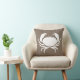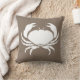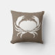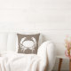 del av havsdekorationen CRAB VIT på färgad kudde på ena sidan och vita ränder på baksidan. Design av Sandy Closs