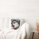 Inject some edgy rebellion into your home decor with this striking classical statue dark art throw pillow. The design features a heavily stylized, fractured Greek bust head on a dark grey background. The classical aesthetic is violently contrasted with modern street art elements, including a vivid red block obscuring the eyes, chaotic black scribble lines, and aggressive red paint splatters and drips. This distressed, mixed-media composition is perfect for an industrial loft, a dark academia bedroom, or a gothic gaming station. It's a powerful statement piece that blends history with rebellious modernism.