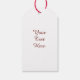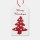 Med effekten Sewn, röd Julgran med knappbubblor på Juletiketter som du vill anpassa med din egen text på baksidan.