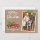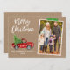 Modern Push Script Watercolor Vintage Red Lastbil med Julgran God jul Family Photo Helgdag Card - Rustic Kraft Papper, Snowflake Grönt Craft Tape Tape