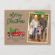 Modern Push Script Watercolor Vintage Red Lastbil med Julgran God jul Family Photo Postcard - Rustic Kraft Papper, Grönt Snowflake Craft Tape Tape