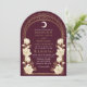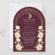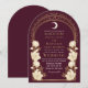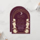 Fånga en tidlös elegans med den kelestialinspirerade inbjudan från Art nouveau! Med en strålande guldbåge, delikata vita blommor och skuggande stjärnor mot en kranbärsbakgrund anger den här designen tonen för ett sofistikerat firande. Perfekt för bröllop, galas och milstolpar! Observera att guld på den här produkten INTE är äkta folie, utan tryckt platt.