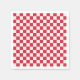 A red and white checkerboard pattern fills the entire image. The grid is evenly spaced, creating a balanced, symmetrical, and vibrant visual.