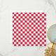 A red and white checkerboard pattern fills the entire image. The grid is evenly spaced, creating a balanced, symmetrical, and vibrant visual.
