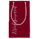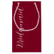 Presentera era dina bröllop-brudgåvor med den här lilla presentväskan som matchar din bröllopsfest färg-plan från ett trendig kranbärrött färg, tillsammans med ett vitt, stiliserat skript som lyder "Bridesmaid".