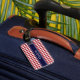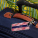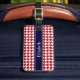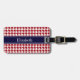 Cranberry Red Wht Houndstooth Navy Namn Monogram Bagagebricka