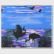 Cranes Bird Kärlek Dance vid Sjö Sunset Wrapping Papper MIGNED Painting