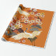 CRANES OCH FÄRG SAKURA. Färgfull blommigt sömlös mönster med blommor, japanfåglar. Vintage traditionell folklig mode-prydnad på Orangens bakgrund.